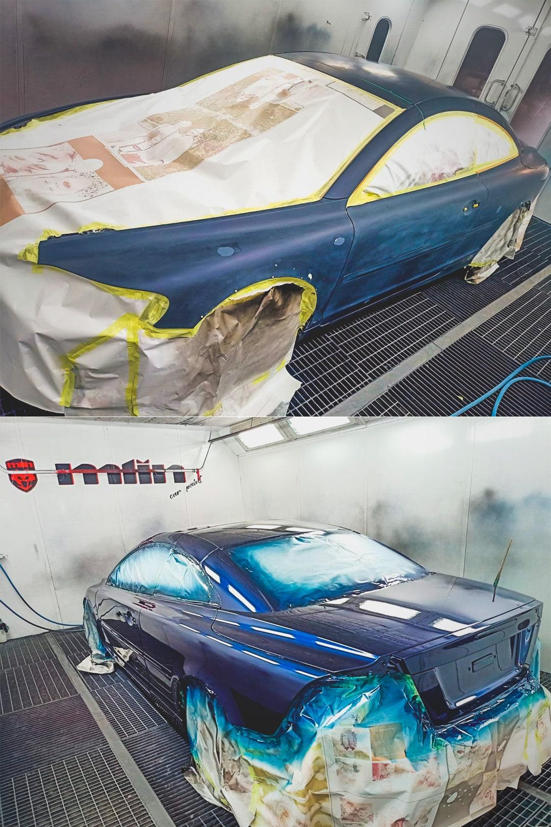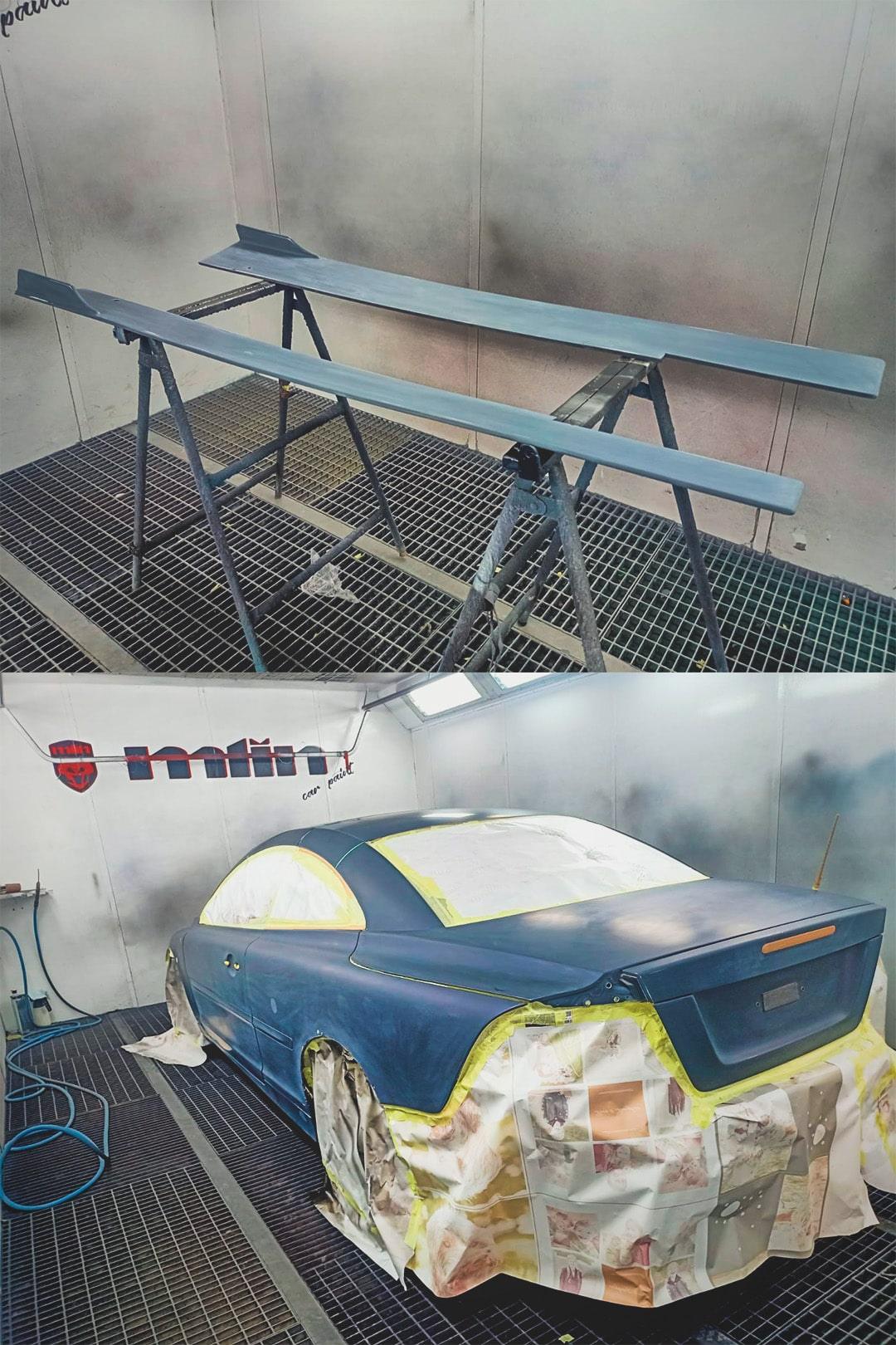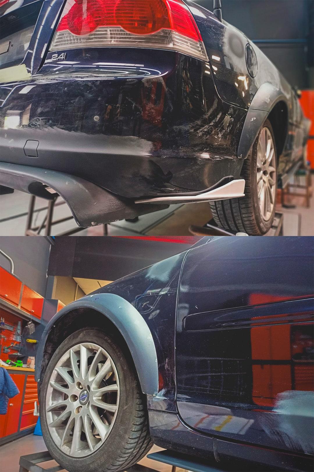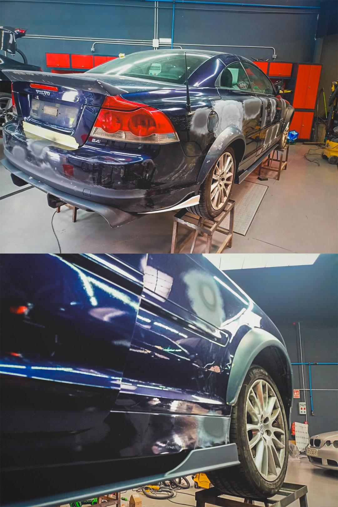 Finalmente, realizamos una restauración completa de la chapa y pintura del coche. Optamos por una combinación de negro brillo y negro mate, dándole al Volvo S70 un aspecto renovado y deportivo.