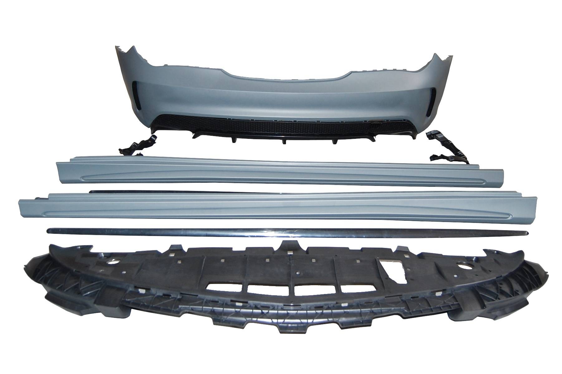 Conjunto de paragolpes delantero, paragolpes trasero y taloneras para el Mercedes W117 13-16 4P / SW.