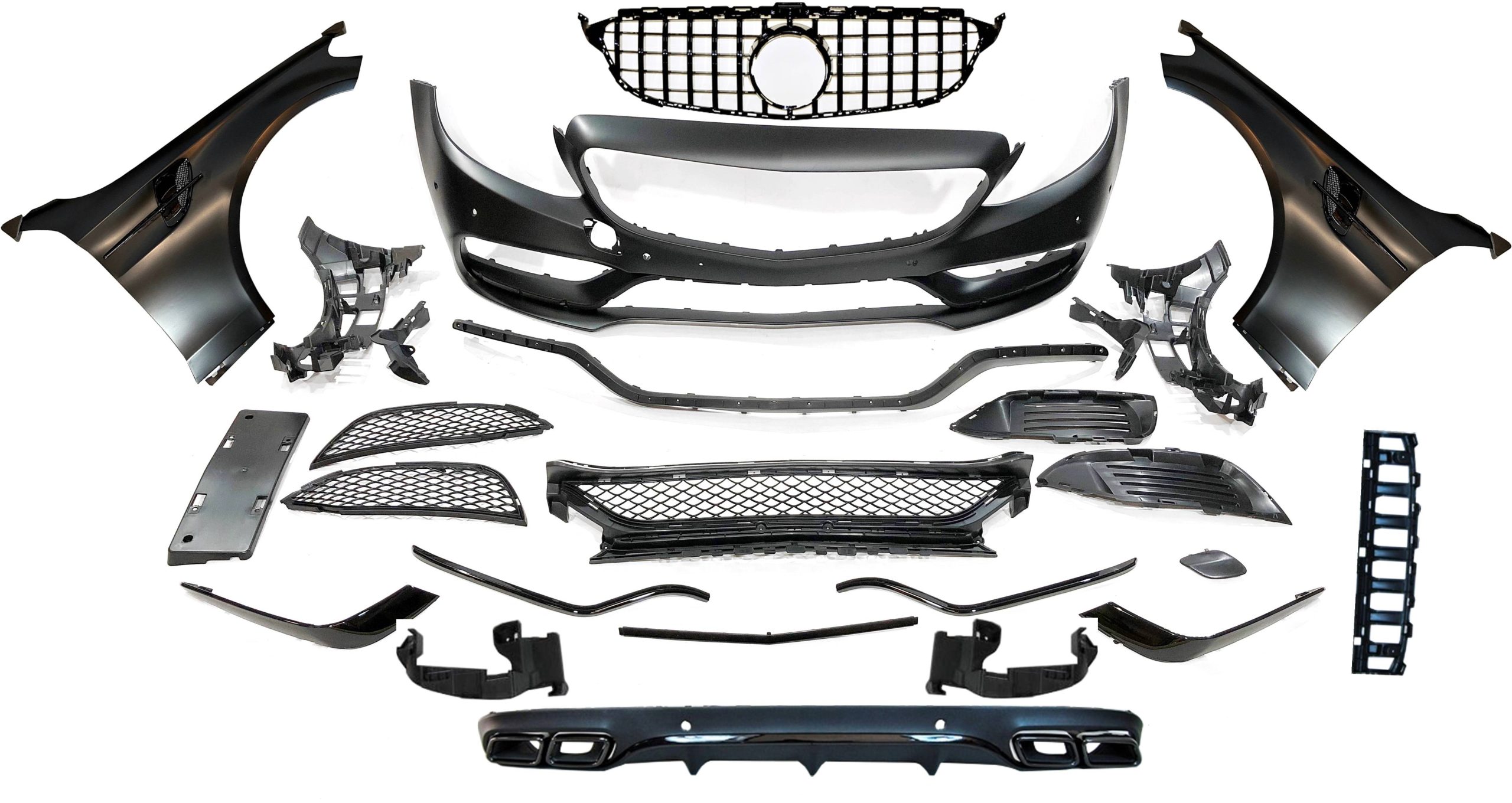 Conjunto de paragolpes delantero, Difusor trasero, Aletas delanteras y parrilla para Mercedes W205 2014-2018 Coupe Look AMG C63.
