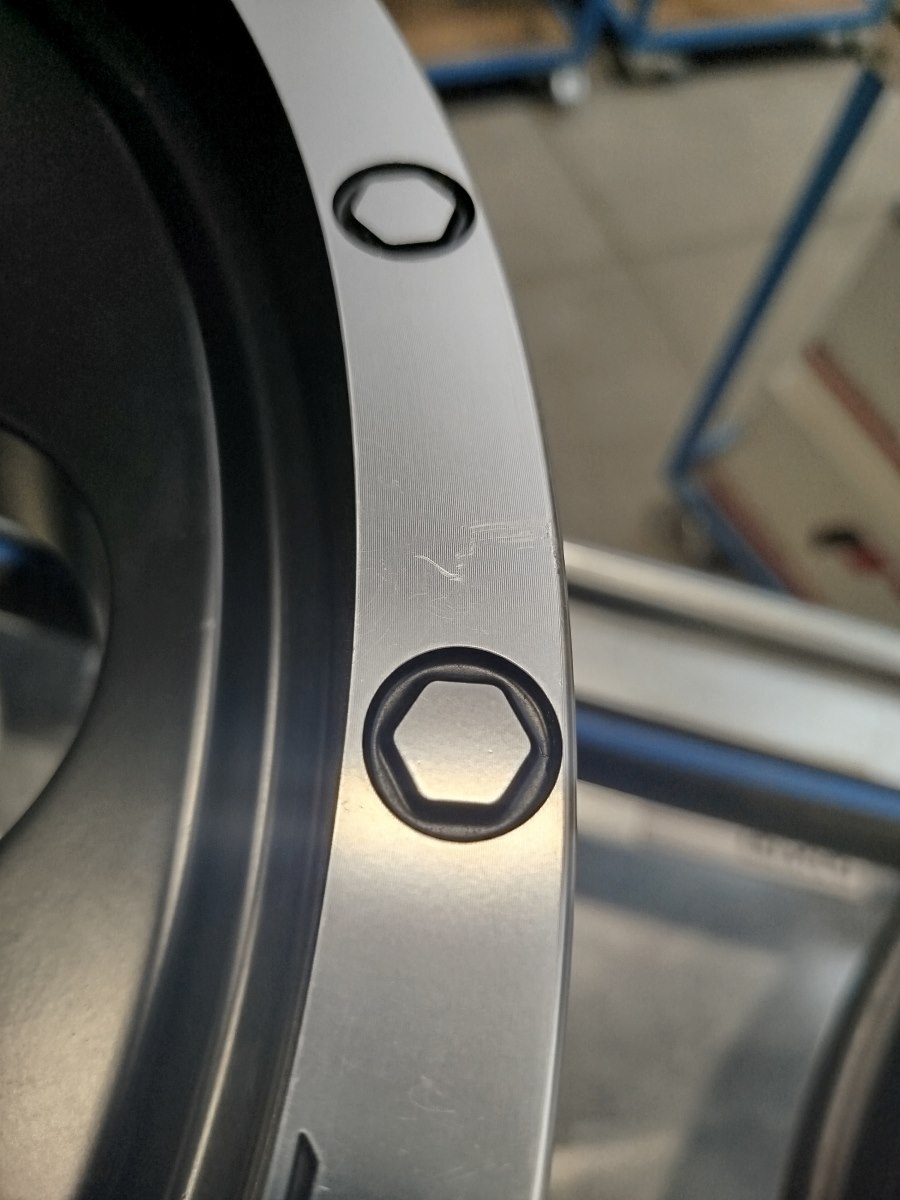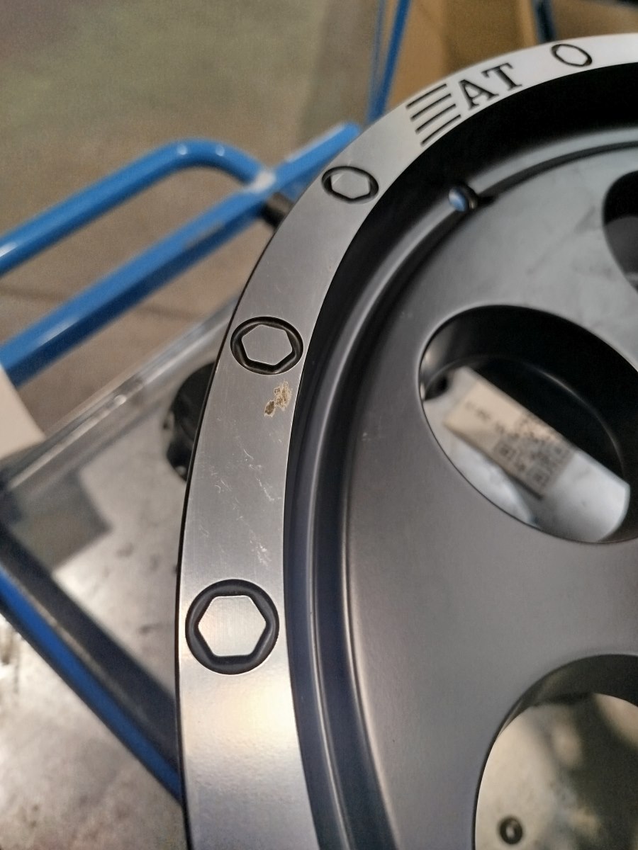 The wheels have tire mounting marks.